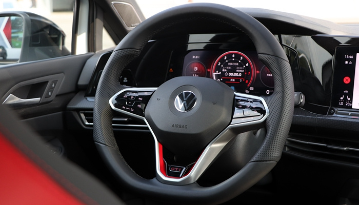 车厢内部也是常规元素了,带GTI标识格子布座椅(这次还是一体式桶椅)、专属的GTI仪表主题、标志等。如果你是一个普通高尔夫车主,那坐进GTI车内,的确能感觉到被“区别对待”了。除此之外,其整体的布局和普通高尔夫一模一样,大部分按钮都变成了触控甚至是虚拟的,真不愧为数字化高尔夫。