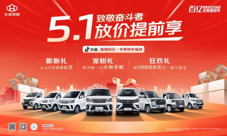 五一节,是劳动者自己的节日。而作为创业创富人的“最佳拍档”,长安凯程这次五一活动不仅仅是一场力度空前的商业促销盛宴,更是一次对劳动者的致敬。机会不容错过,有意向的老板速速关注长安凯程,锁定直播间,挑选心仪车型,同时将大堆福利一网打尽,为自己的事业再添一把火,让创富之路更加顺畅!