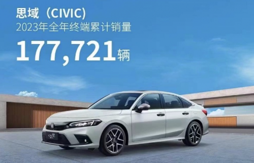 然而在合资车“逆风局”中,依然有能打出稳定表现的选手。近日,东风本田公布了2023年全年销量,2023年现国内全年终端累计销量超61万辆,东风本田累计产销也成功突破800万辆。其中思域全年累计销量177,721辆,成绩十分亮眼,在一众车型中仍属热销行列。