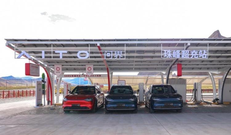 问界珠峰超充站位于珠穆朗玛峰国家公园北大门停车场内,共配置3套主机,4把600kW超充枪,16把250kW快充枪,覆盖20个车位,光伏装机150kW及200kWh储能,未来年发电量预计达到23.68万kWh。该站的建设攻克了极高海拔光储充用一体化项目设计、施工等技术难题,确保用户一路都“能充”,一路都“快充”。