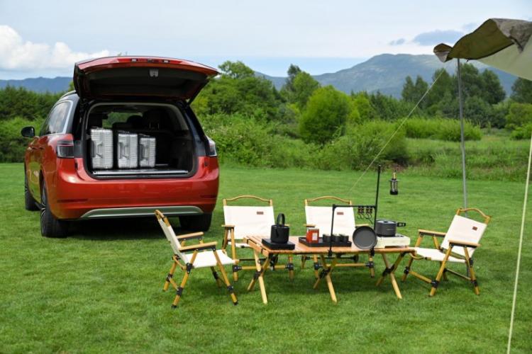 大五座车型在后备箱空间上也玩出了新花样。与六座版相比,大五座车型对空间的利用更加灵活多变。后备箱内配备2条滑轨,可根据需要增加各种装备。无论是周末露营时的户外餐桌,还是闲时垂钓的承重钓鱼凳,都能轻松应对。若想要享受私人影音时光,只需放倒第二排座椅,铺上超大舒适床垫,配合车载投影系统,即可秒变私人影院。