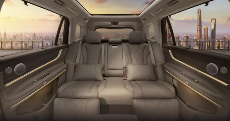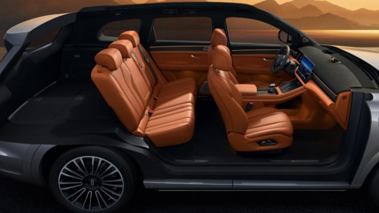 问界新M7同样有百变魔力舒适座舱设计,五座版本拥有同级最大的3338mm车内有效空间,以及同级最大的一排、二排和后备箱空间。