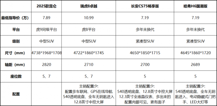 “以新打旧”“以大打小”,2025款昆仑能否成为“自主四杰”?