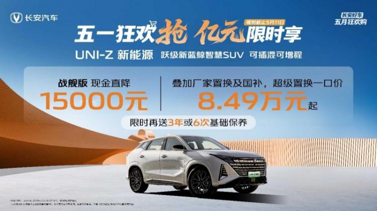 本次活动期间,长安汽车针对UNI-Z系列亦推出限时福利,以UNI-Z新能源战舰版为例,下订立获现金直降15000元优惠,限时再送3年或6次基础保养、8万2年0息;0首付;5年超长贷、888元优惠享价值3500元充电桩、至高5000元置换补贴等福利,叠享至高20000元国补,仅需8.49万元起的到手价,就能开上这辆“汽车机器人”,无论购车养车,都让用户0压力!