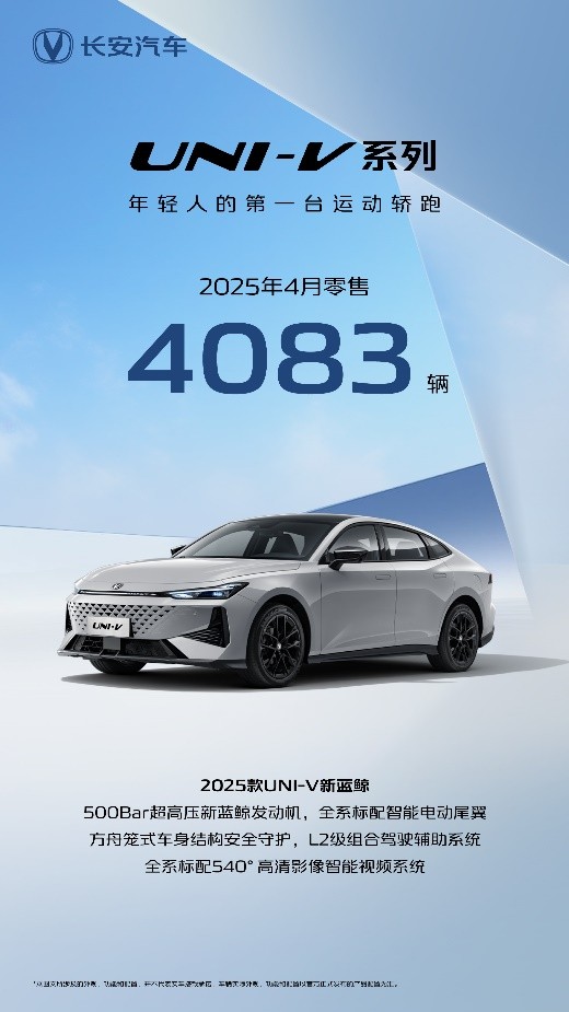 “好看好开好安全”的UNI-V系列,在轿跑市场一直都是年轻用户的“宠儿”。4月,搭载500Bar超高压直喷新蓝鲸发动机的2025款第二代UNI-V上市,进一步推动了UNI-V系列的市场热度。