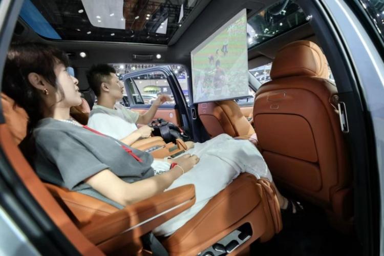 在智能座舱方面,问界M8全车满配十一屏,并搭载HarmonyOS 4智能座舱,通过三指滑动,能够轻松实现多屏之间无缝流转等娱乐体验。在AI大模型赋能下,智慧助手小艺还能精准应答并提供个性化服务。例如,在车展现场,观众只要说一句“我热了”,即可自动调节空调温度,实现用户需求“秒响应”。