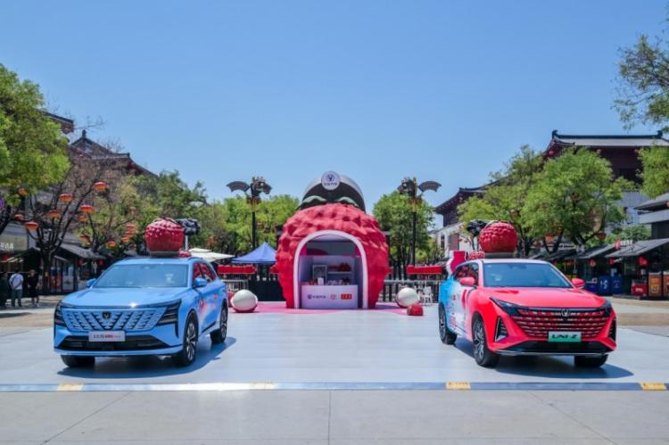 今年6月7日-15日举行的重庆国际车展上,长安汽车展馆化身古韵盎然的”长安剧场”,衣袂飘飘的杨贵妃手托冰鉴荔枝穿行人群,诗圣杜甫与观众吟诗对句赠饮”荔小吉”饮品,将剧中的荔枝传奇首次转化为可触可感的品牌场景。随后,伴随剧集的热播,长安家族车型也开启了一场重走“荔枝转运”路线的长测穿越之旅。
