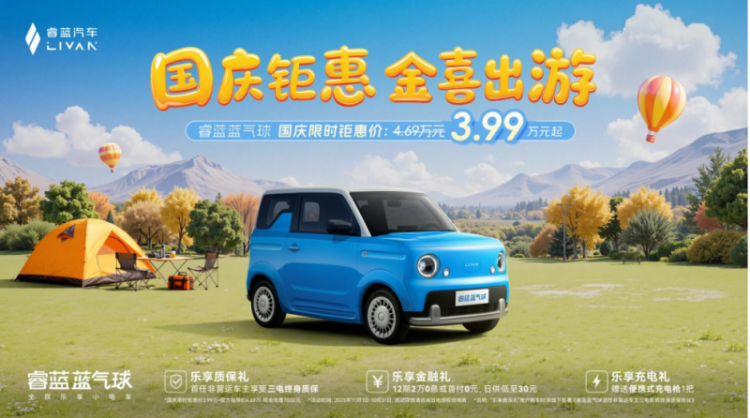 睿蓝蓝气球3.99万中秋国庆限时钜惠,引爆纯电小车价值革命!