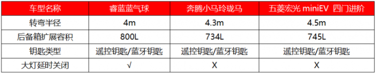 空间配置上,五菱宏光MINIEV后备箱容积可扩展至745L,奔腾小马则是734L,而睿蓝蓝气球后备箱容积可扩展至800L,在装载能力上具有一定优势,能够满足家庭出行的刚性需求。全车11处储物空间,精准解决家庭用户痛点,提供了更优的乘坐空间。同时,睿蓝蓝气球凭借3100mm的车长和2015mm的轴距,拥有同级最小的4米转弯半径,好开好停。