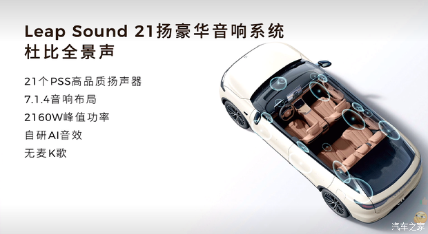 智能化层面,新车配备60英寸AR-HUD,可显示行车、导航、辅助驾驶信息,车机升级Leapmotor OS 4.0 Plus 操作系统,高通骁龙SA8295P芯片支撑,实时感知的3D灵动桌面,智慧分屏模式,支持HiCar、Carlink互联,新车还支持AI语音大模型,DeepSeek+通义千问,能无麦K歌,还有Face ID 人脸识别系统,21个PSS扬声器+杜比全景声。辅助驾驶层面,支持高速路段辅助驾驶,高通骁龙8650芯片提供核心算力。