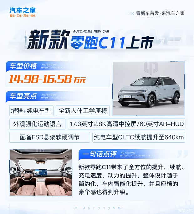 售14.98万起/纯电续航640km 新款零跑C11正式上市