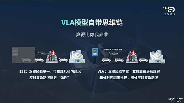 元戎启行CEO周光表示:“VLA模型融合了语言模型,具备强大的思维链能力,能摆脱传统端到端模型的黑盒难题,并将信息串联、分析,从而推理出因果关系。此外,它天然集成海量知识库,泛化能力更强,能够更好地适应复杂多变的真实道路环境。”