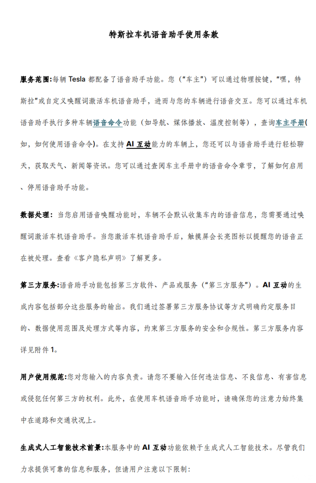 特斯拉条款截图