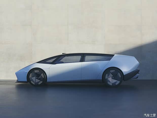 侧面来看,新车拥有双A柱造型,配备了摄像头电子外后视镜,而不是侧镜;侧窗在后门位置急剧上升,与D柱形成了一个块状设计,整体流线型的车头车尾,形成了“楔形车身”,甚至你能看出一些兰博基尼的味道。同时,新车在车顶部分配备了激光雷达,轮圈也采用低风阻设计,整车的设计理念上也是主打低风阻。