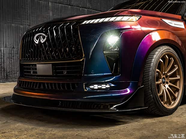 [本站 新车官图] 日前,英菲尼迪QX80 R-Spec概念车官图正式发布,该车将会在SEMA改装展上迎来首发亮相。新车将会搭载GT-R上使用的3.8T双涡轮增压V6发动机,经过调校后最大功率可达1000马力。