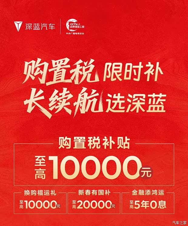 在产品规划上,深蓝汽车正加速完善产品矩阵,据相关渠道信息,今年年内将至少推出一款全新车型,目前车型定位、核心参数等细节暂未披露。结合品牌战略,未来5年深蓝将累计推出30款主流及差异化车型,覆盖轿车、SUV、硬派越野三大系列,进一步拓宽市场覆盖。此外,1月20日深蓝汽车官宣限时购车政策,针对深蓝G318无忧穿越版、深蓝L06、2026款深蓝L07、深蓝S05、深蓝S07、深蓝S09六款车型,推出至高10000元购置税补贴,同步搭配至高10000元换购礼、20000元国补礼及5年0息金融礼,以多重福利激活市场消费潜力。