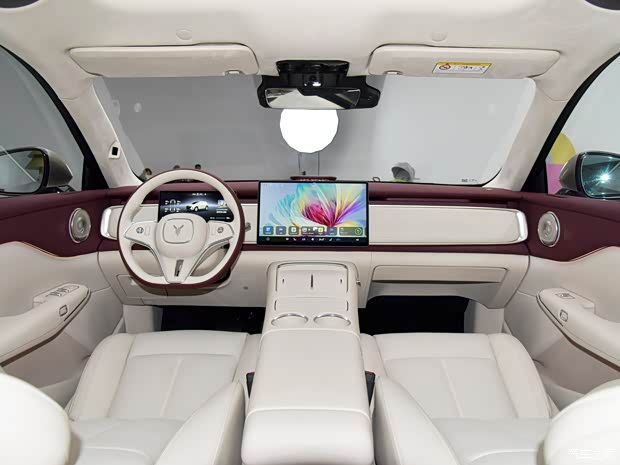 内饰设计凸显简约化的造型,整体采用较为平直且简洁的线条进行勾勒,同时搭配悬浮式中控大屏以及三辐式多功能方向盘。内饰被大量软皮材质包裹,中央扶手处下方还配有一个较大的储物空间。