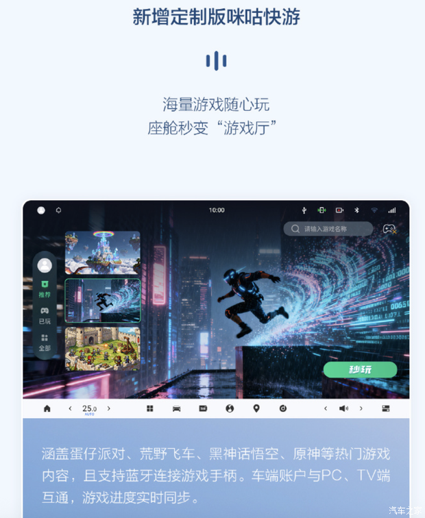 其中,新增的功能主要包括:DeepSeek & 豆包双AI大模型、爱奇艺APP、定制版咪咕快游、支付宝车生活APP等功能。