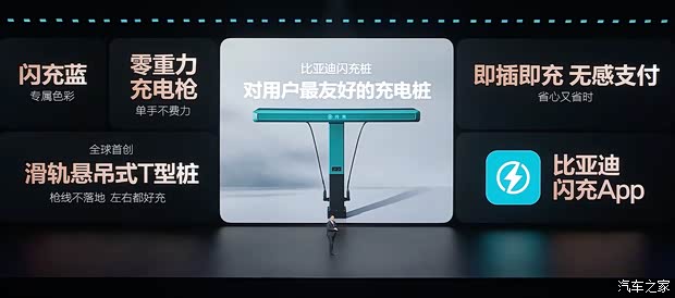 在闪充桩方面,新的闪充充电桩采用了全新的T字形设计,充电提枪变得更加方便,充电枪的设计也更加小巧,并有专属的防水保护,上部的滑轨设计,也方便离车更远距离充电,同时,也减少了充电设施占用的面积,新的闪充充电站类似于加油站,车辆超时占位也将会收取占位费,只需要在比亚迪闪充App上注册,即可实现即插即充。搭载第二代刀片电池的闪充车主赠送1年免费闪充权益,闪充站还将面向所有新能源车品牌开放。比亚迪还发布“圆梦建站”计划,只要有4个车主提议,即可在一周内建站。